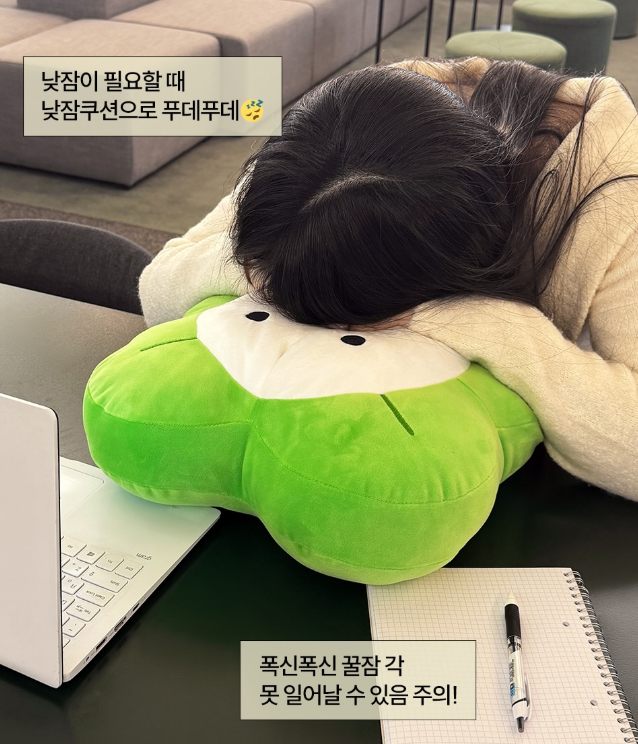 - 사무실이나 학교에서 잠깐 휴식을 취할 때 필수인 낮잠 쿠션이에요.