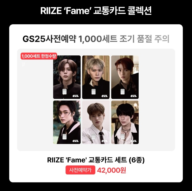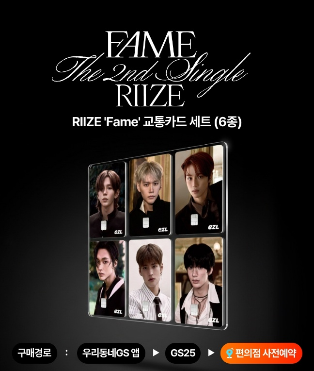 GS25에서 라이즈 멤버들의 비주얼을 담은 'Fame' 교통카드 세트 사전예약을 전격 오픈했는데요!
