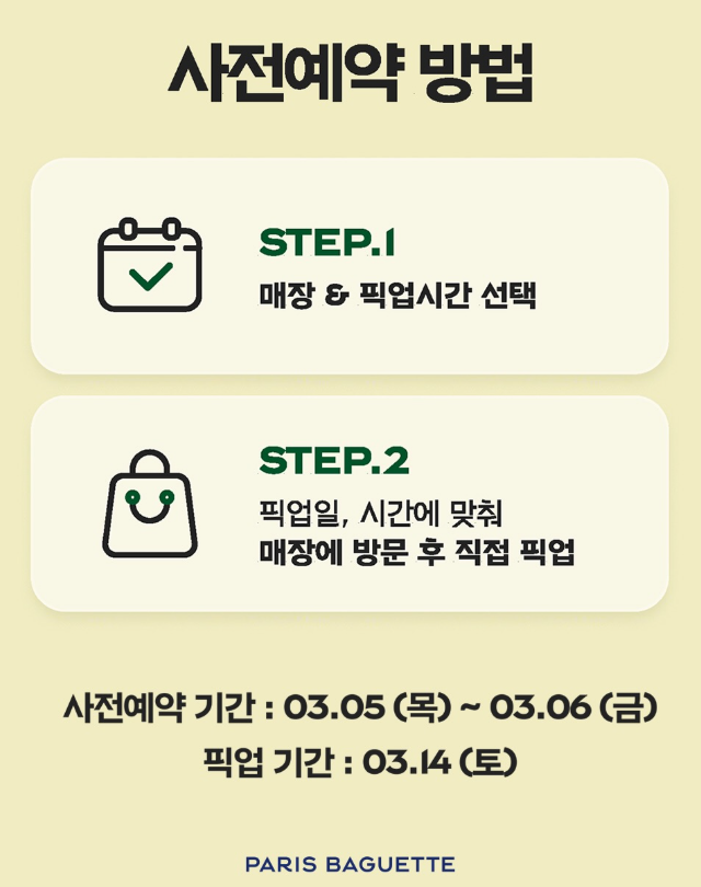 - 🛎️ 예약 채널: 오직 **파리바게뜨 앱(파바앱)**에서만 가능