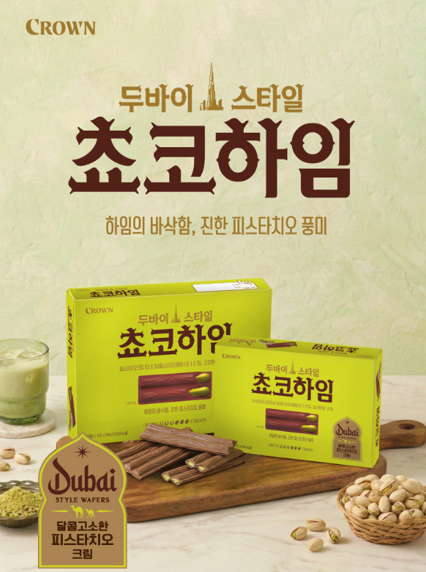 크라운제과에서 야심 차게 선보이는 **'두바이스타일 쵸코하임'**이 그 주인공인데요!