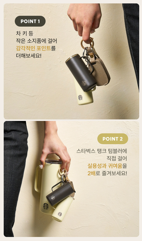 - 구성 2: 미니어처 텀블러 키링 1개 (2종 중 택 1)