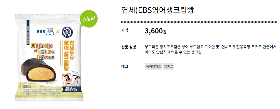 - 제품명: 연세우유 EBS 영어 생크림빵 (황치즈)