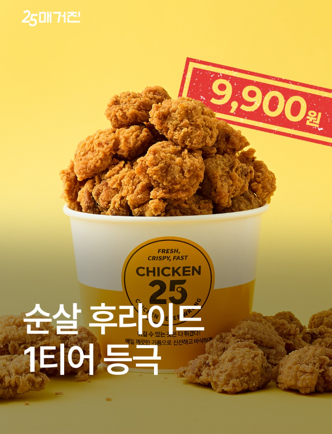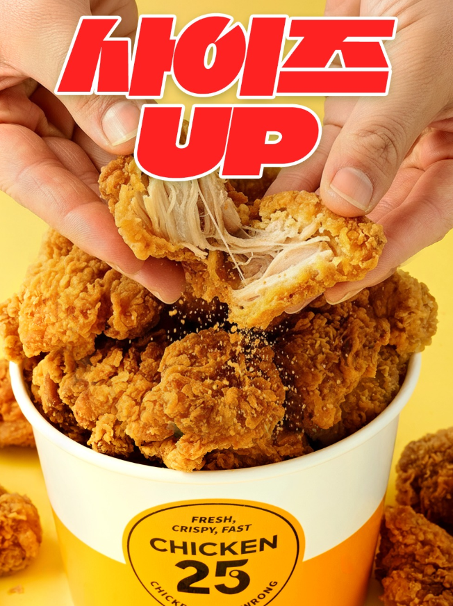 기존 제품보다 훨씬 커진 크기와 압도적인 바삭함으로 무장한 **'치킨25 순살후라이드치킨'**이 그 주인공인데요!