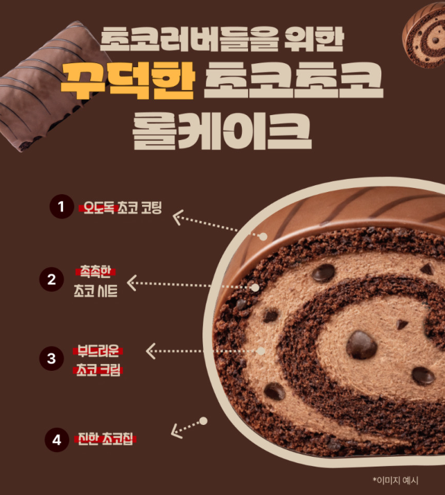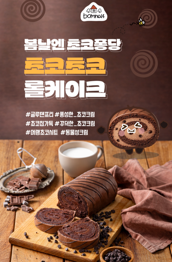 "초코가 퐁당! 입안 가득 몰아치는 달콤한 마법, 이제 봄날엔 롤케이크로 행복을 캐치하세요."