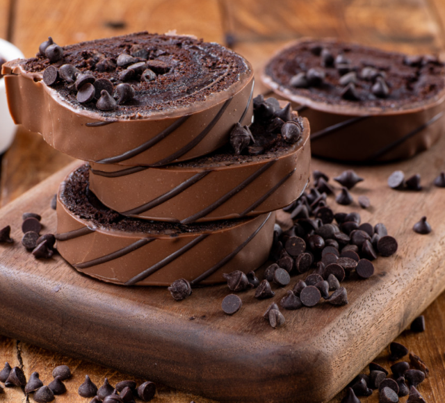 - 부드러운 롤케이크 겉면을 진하고 꾸덕한 초코로 한 번 더 감싸 안았습니다.