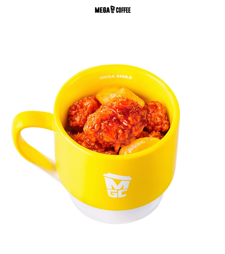 "카페의 변신은 무죄! 이제 메가커피에서 시원한 음료와 함께 뜨끈한 컵치킨을 만나보세요."
