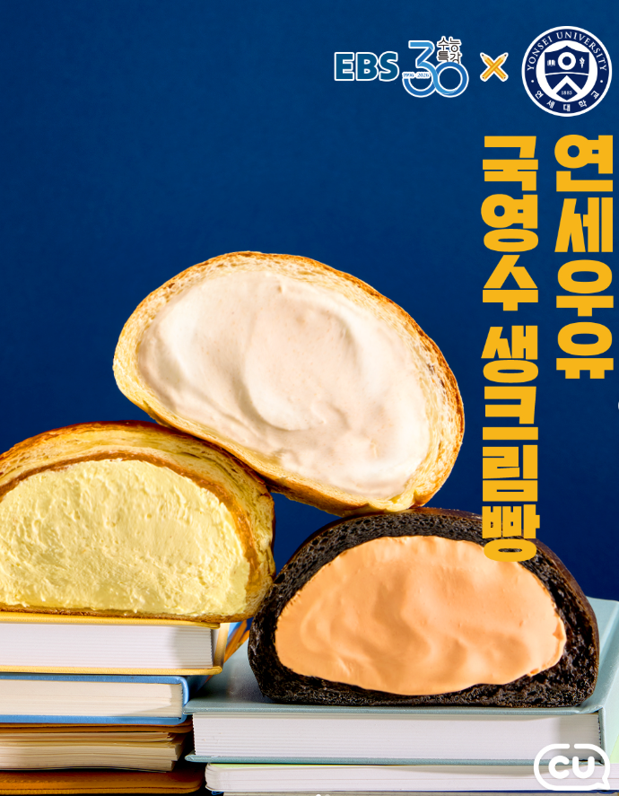 "맛있게 먹고 공부하자! 이제 CU에서 국·영·수 생크림빵으로 달콤한 에너지를 충전하세요."