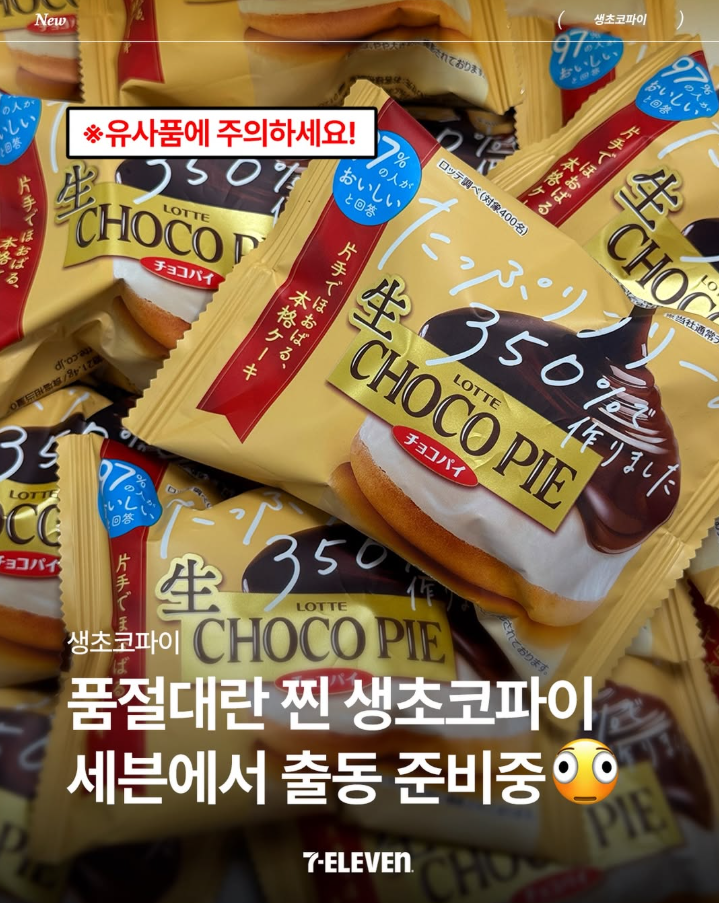 "진짜가 돌아왔다! 이제 세븐일레븐에서 격이 다른 생초코파이의 감동을 다시 한번 느껴보세요."