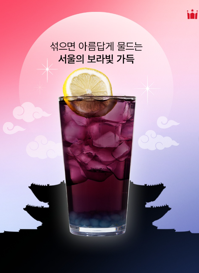 1. 섞기 전 영상 촬영 필수: 붉은색과 푸른색이 섞여 보랏빛으로 변하는 찰나의 순간을 영상이나 릴스로 남겨보세요. '광화문 오로라'라는 이름에 걸맞은 환상적인 결과물을 얻을 수 있습니다.