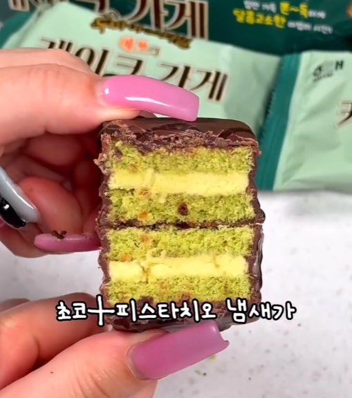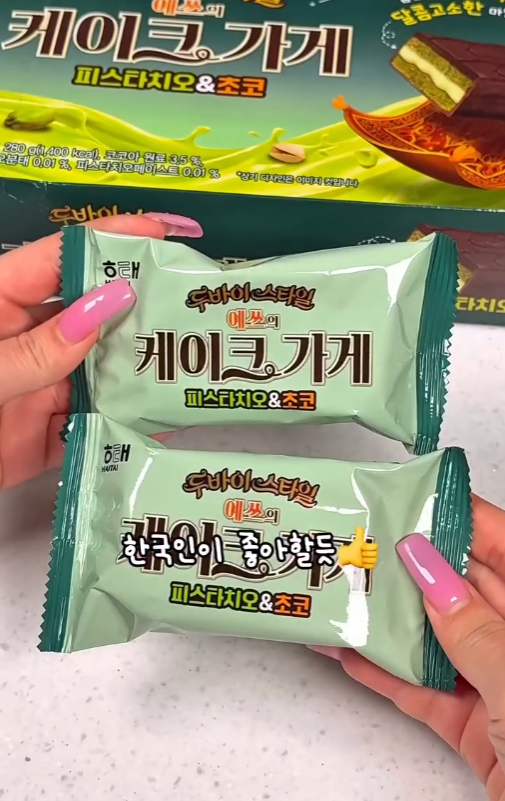 - 제품명: 해태 예쓰의 케이크가게 피스타치오 초코