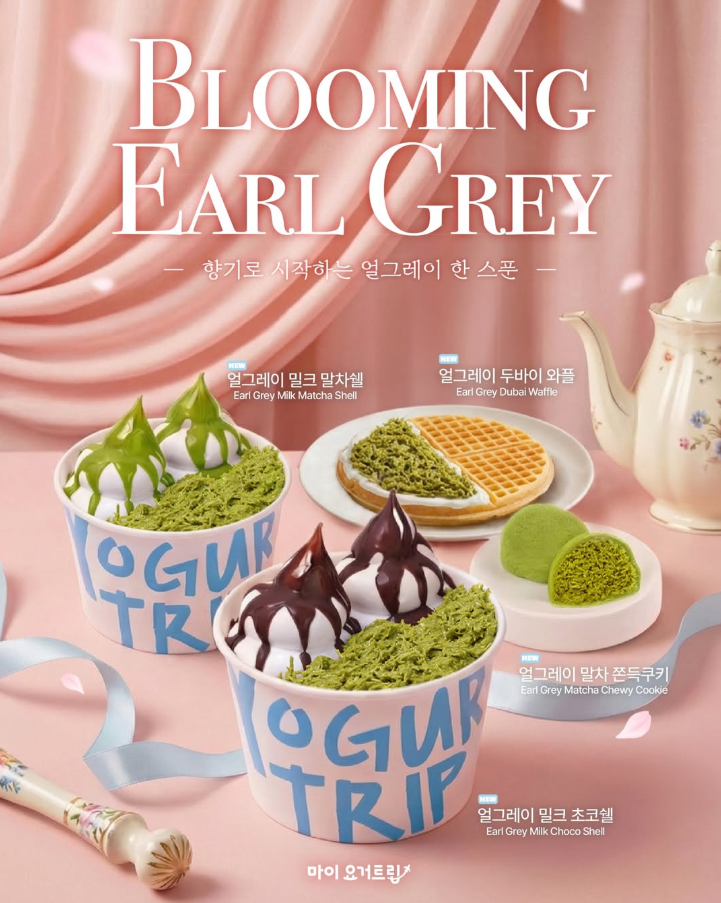 "향기도 피어나고 맛도 피어나는 봄의 선물! 이제 요거트월드에서 얼그레이 두바이의 매력에 푹 빠져보세요."