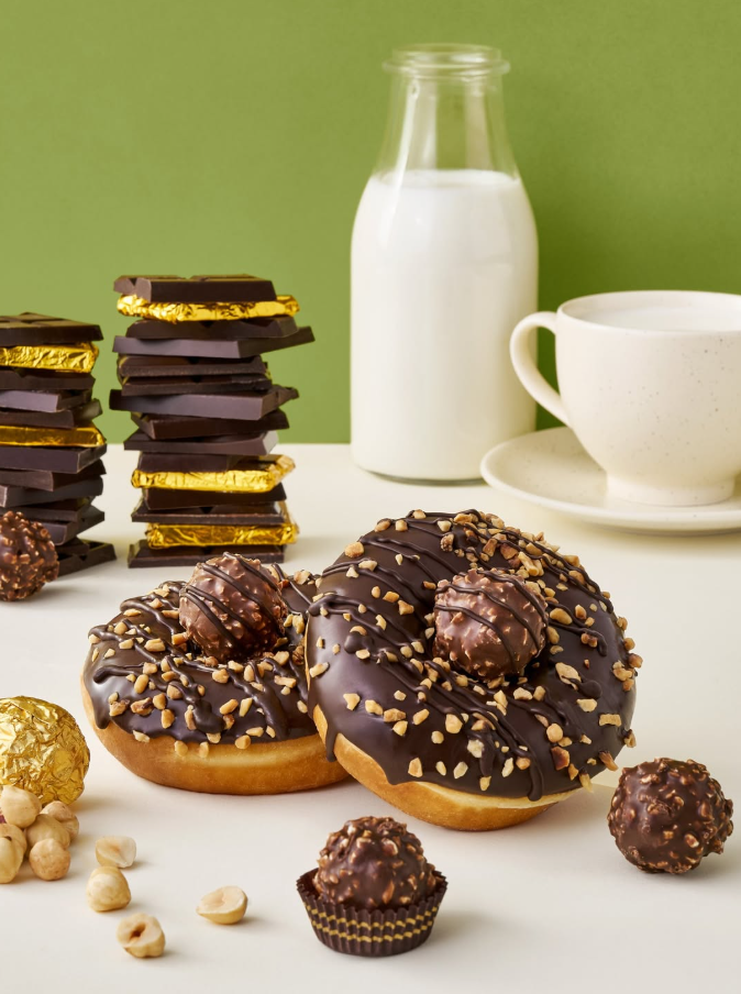 3. 선물용 도넛 팩 구성: 주변 지인들에게 응원의 메시지를 전하고 싶을 때, 헤이즐넛 로쉐를 포함한 도넛 팩을 선물해 보세요. 화려한 비주얼 덕분에 선물하는 사람의 센스가 더욱 돋보입니다.