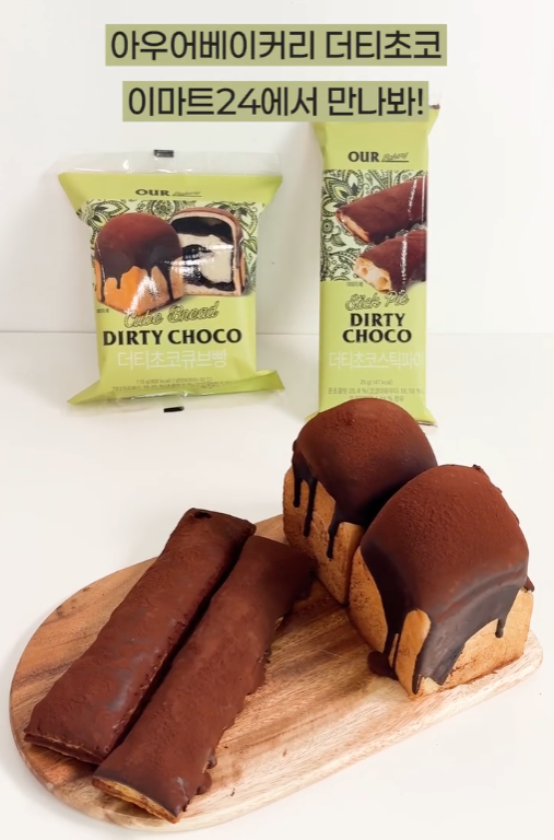 "기다림 없이 즐기는 프리미엄의 맛! 이제 이마트24에서 아우어베이커리의 더티초코 감성을 그대로 느껴보세요."