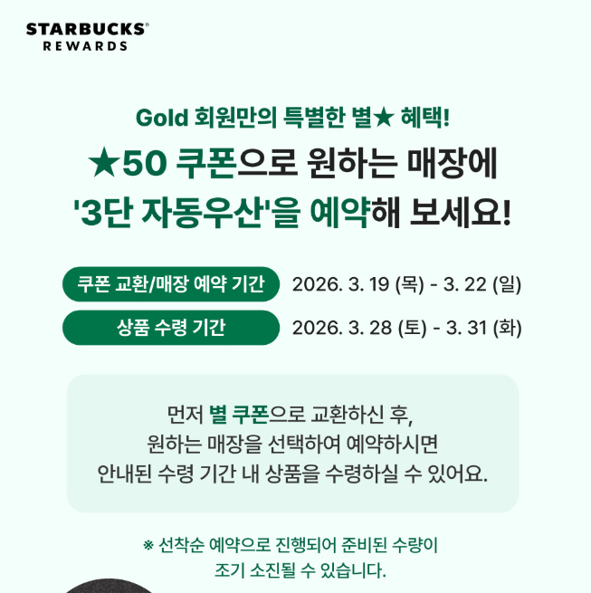 - 이벤트 대상: 스타벅스 리워즈 골드 등급(Gold Level) 회원