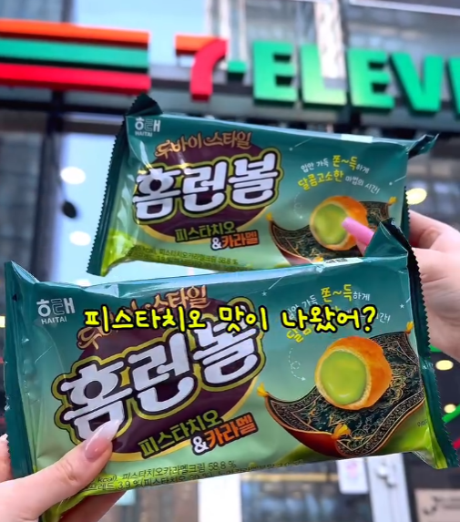 "홈런볼로 만나는 두바이의 맛! 이제 세븐일레븐에서 피스타치오와 카라멜의 환상적인 하모니를 경험하세요."
