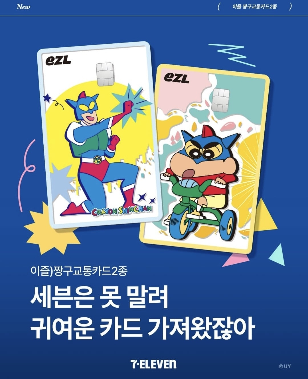 "이왕 쓰는 교통카드, 이제 짱구와 함께 즐겁게 이동하세요! 세븐일레븐 짱구 이즐 카드가 여러분의 발걸음을 가볍게 해줍니다."