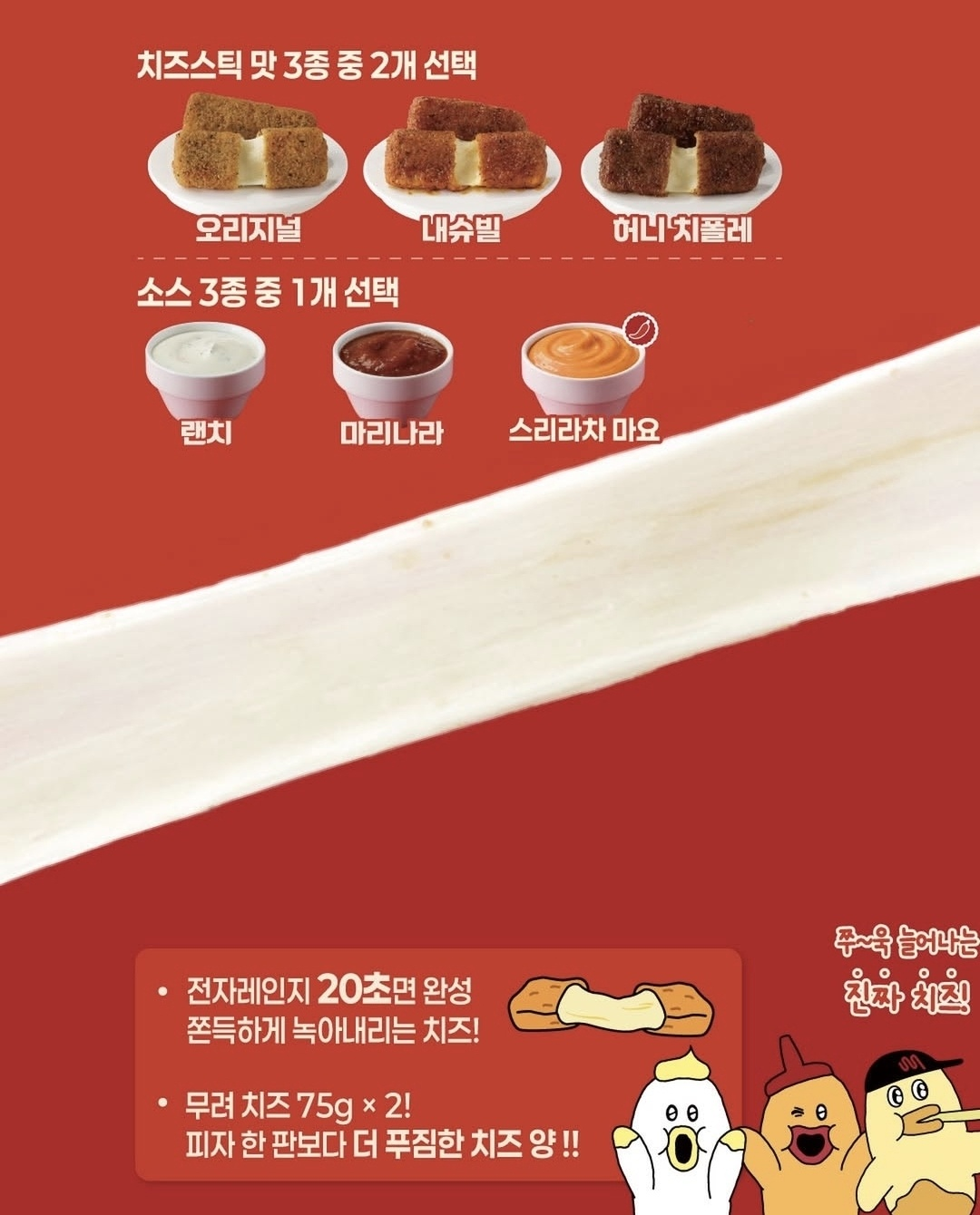 - 특징: 주문 즉시 튀겨내어 최상의 바삭함을 자랑하며, 포장 시에도 치즈의 탄력을 그대로 유지하는 노하우가 담겨 있습니다.