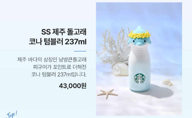 제주도의 푸른 바다가 보이는 스타벅스 매장에 들러 돌고래와 해녀의 정취가 담긴 특별한 MD를 겟(Get)하셔서,