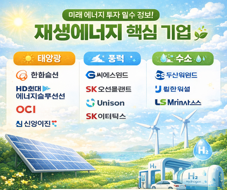 2. 밸류체인별 접근: 단순히 '재생에너지'로 묶기보다 태양광(소재/모듈), 풍력(타워/하부구조), 수소(연료전지/저장) 등 세부 섹터별로 강점을 가진 기업을 구분하여 분석하는 것이 중요합니다.
