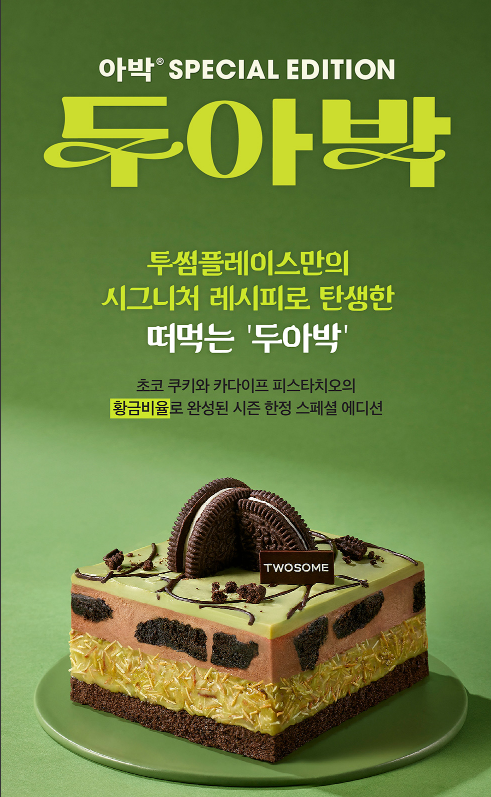 투썸플레이스의 절대 강자, '아박'이 요즘 가장 핫한 두바이 초콜릿 스타일과 만나 **'떠먹는 두아박'**으로 새롭게 찾아옵니다! 🍫💚