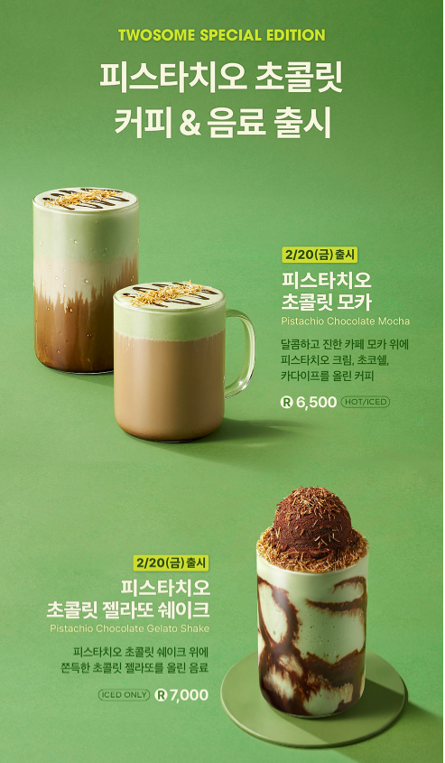이번 투썸 스페셜 에디션은 피스타치오의 고소함과 카다이프의 바삭함을 좋아하는 분들이라면 절대 놓쳐선 안 될 라인업입니다. 음료는 2월 20일부터, 케이크는 27일부터 만나보실 수 있으니 일정 잘 확인하셔서 투썸으로 달려가 보세요!