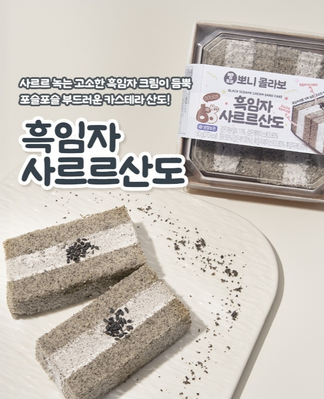 - 특징: 폭신한 흑임자 카스테라 사이에 흑임자 크림을 샌드한 메뉴입니다. 입안에서 사르르 녹는 부드러운 식감을 선호하신다면 이 산도를 추천드립니다.