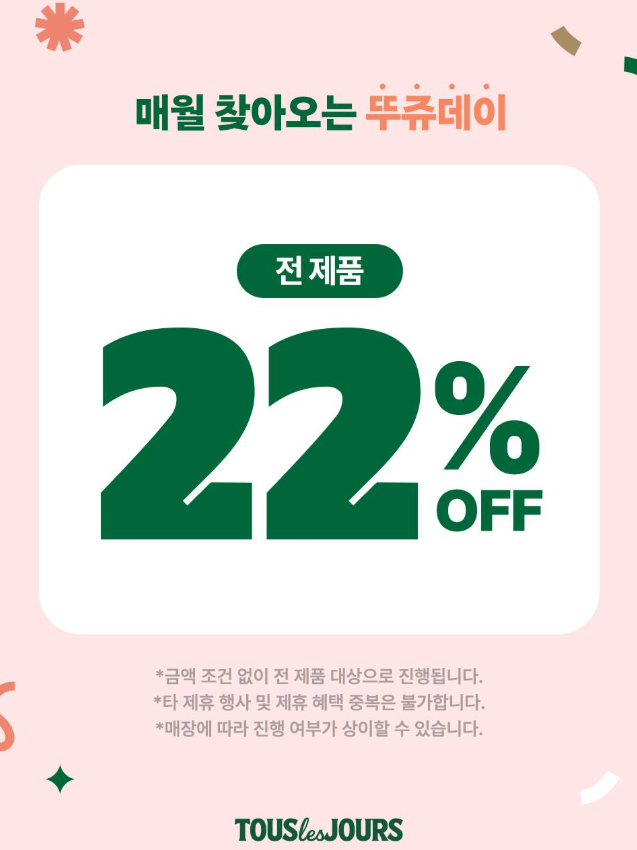 바로 22일을 기념하여 진행되는 ✨뚜쥬데이✨ 이벤트 소식입니다.